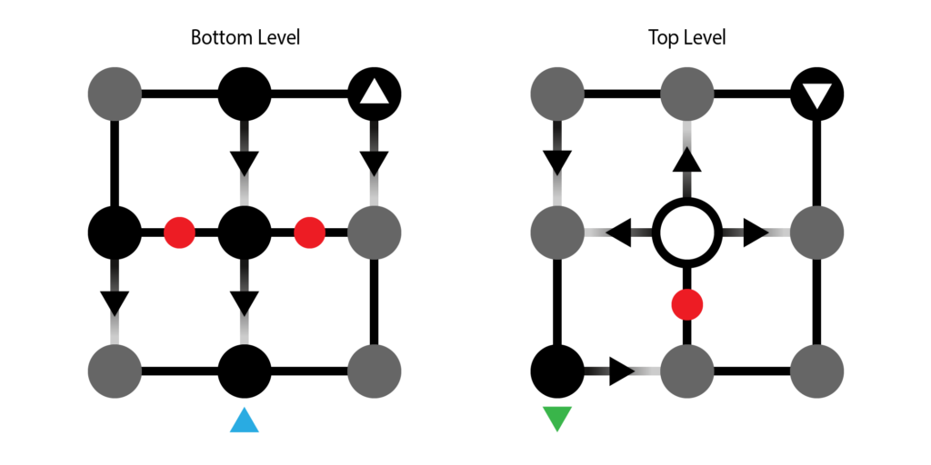 • You enter at the bottom level, and can climb to the top level at the white arrow.